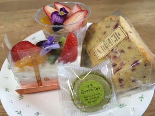 フルーツたっぷりのキラキラケーキに、白あんを使って作るというしっとりとしたマカロンなど、見た目にも美しい商品ばかりです。