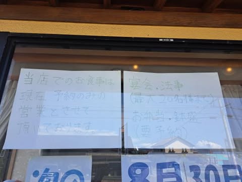 うえだ屋の看板に和風レストランとありますが、現在食事は宴会や法事など予約、お弁当の予約のみの営業となります。