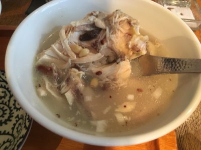 参鶏湯にはクコの実や松の実がたくさん入っていて、見るからに体に良さそう!