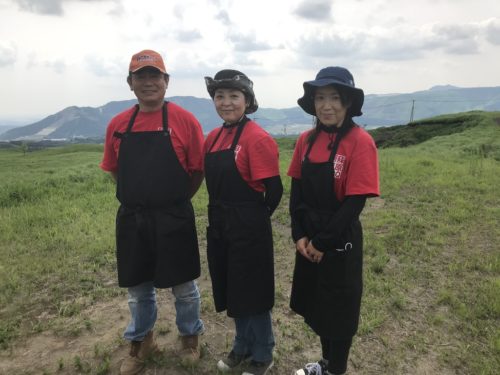 出迎えてくれたのは、阿蘇千年草原コンソーシアム「ANECO」のスタッフさん。写真左が代表の山本さん。