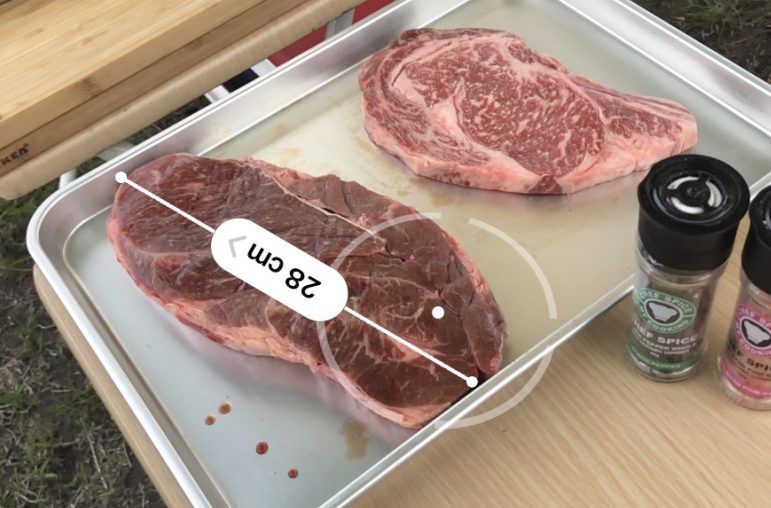 ジャァーという音と、一気に美味しそうなお肉の香りが漂うんです(野外なのに)