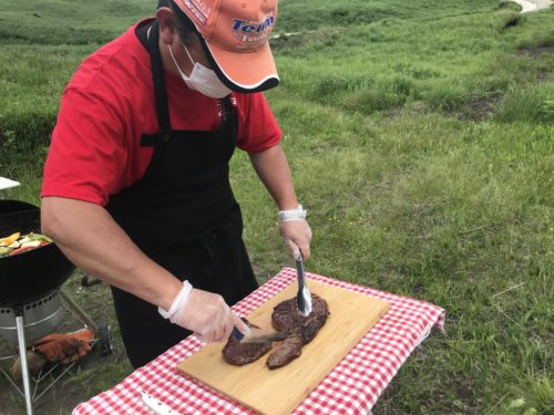 BBQの主役は豪快なあか牛ステーキ