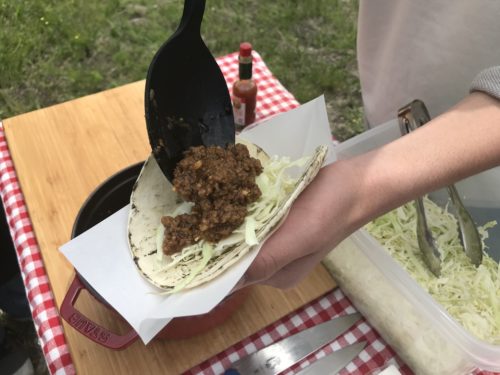 スパイスたっぷりなので、焼いた時の香りが草原に充満