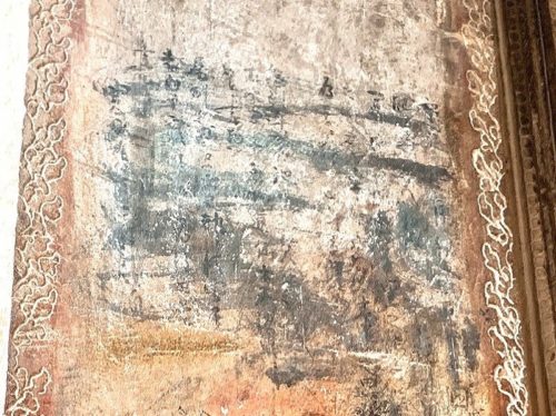 熊本に関するものがあるのは第二回廊の西側、十字回廊の柱。現在ではクリアに見ることは出来ませんが、墨書きされた漢字の文章があります。