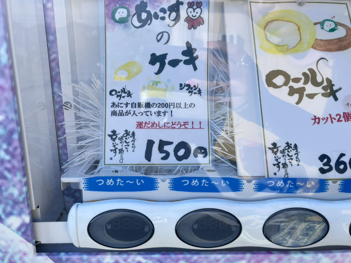上天草市にあるケーキの自動販売機は、ケーキ屋さん「あにす」のケーキが24時間いつでも購入できます。