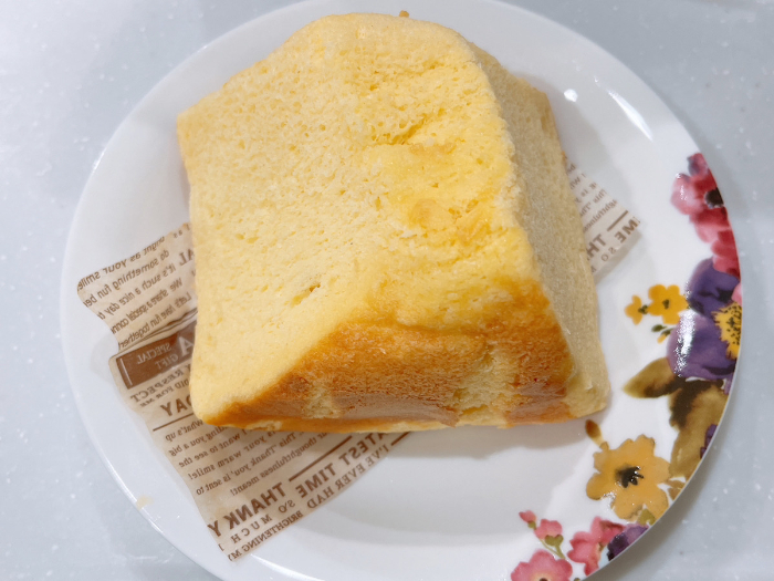 まずはシフォンケーキから。6分の1カットってどのくらいの大きさか袋を開けるまでイメージが湧かなかったんですが、思っていたよりも大きいサイズ。