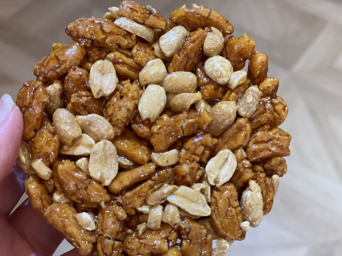 ピーナッツとか色々入っているのに、キレイに平らなんですよ。