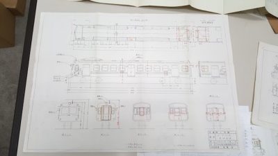 また、電車図面は青ガエルが熊本に来たときに作られた、改造点などが朱書きされています。当時の様子を窺い知ることが出来る貴重な資料を今回発掘し、丁寧に複写してお届けします。