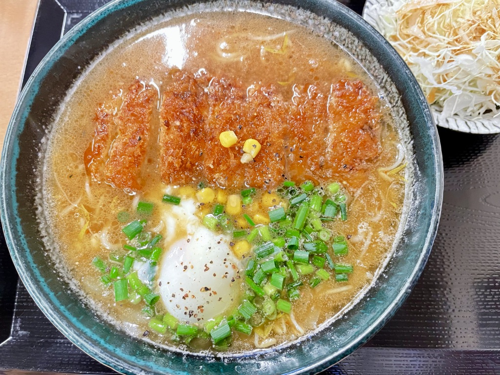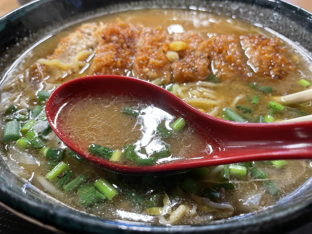 トンカツが入ってるから、気になるのが油っこさですよね。スープ飲んだときに、ヌルッと感やギトギト感は皆無です、なんならアッサリ(滑りが良くなっているのかな、油で)。