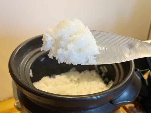 土鍋で炊かれたご飯がやってきます(写真は3人前)。