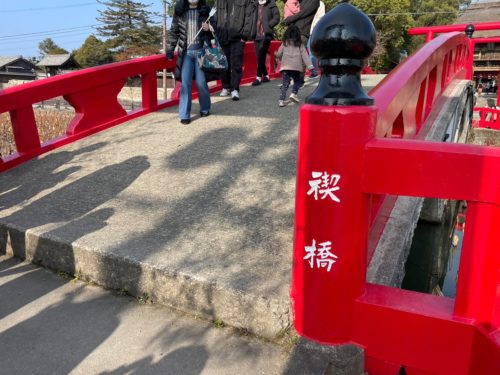 今は多くの人々の支援で、また新しい欄干がかけられ、鮮やかな朱色が映える橋となって復活しています。