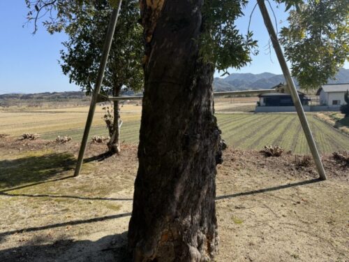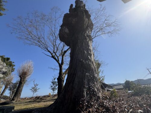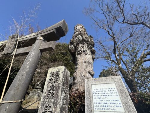 この鳥居の横の大木は生きているのでしょうか?