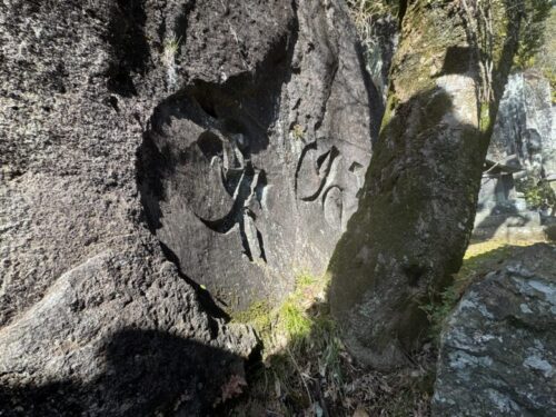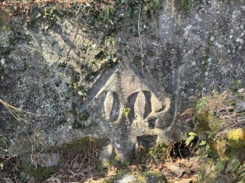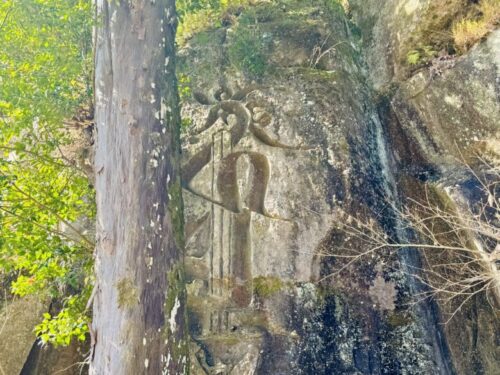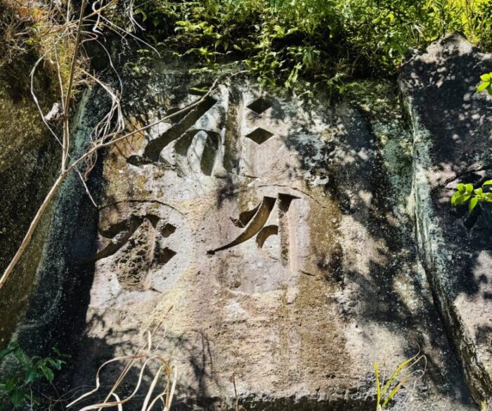 その向こうにも立派な梵字が。先程の図をスマホで写真を撮ってから、岩の中から梵字を探す作業はとても楽しかったです。一つ一つに魂が宿っているような力強さに感動します。