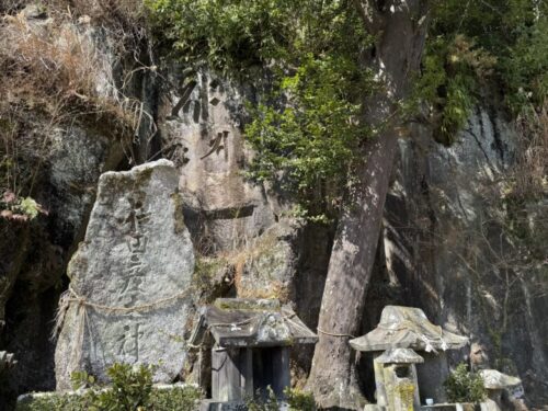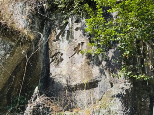 【玉名市】圧巻!!!岸壁にどどんと梵字群。あなたはどれだけ探せますか?~青木熊野座神社内の青木磨崖梵字群~