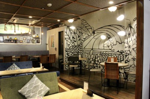 店内はハワイを意識された造りで、とてもお洒落。