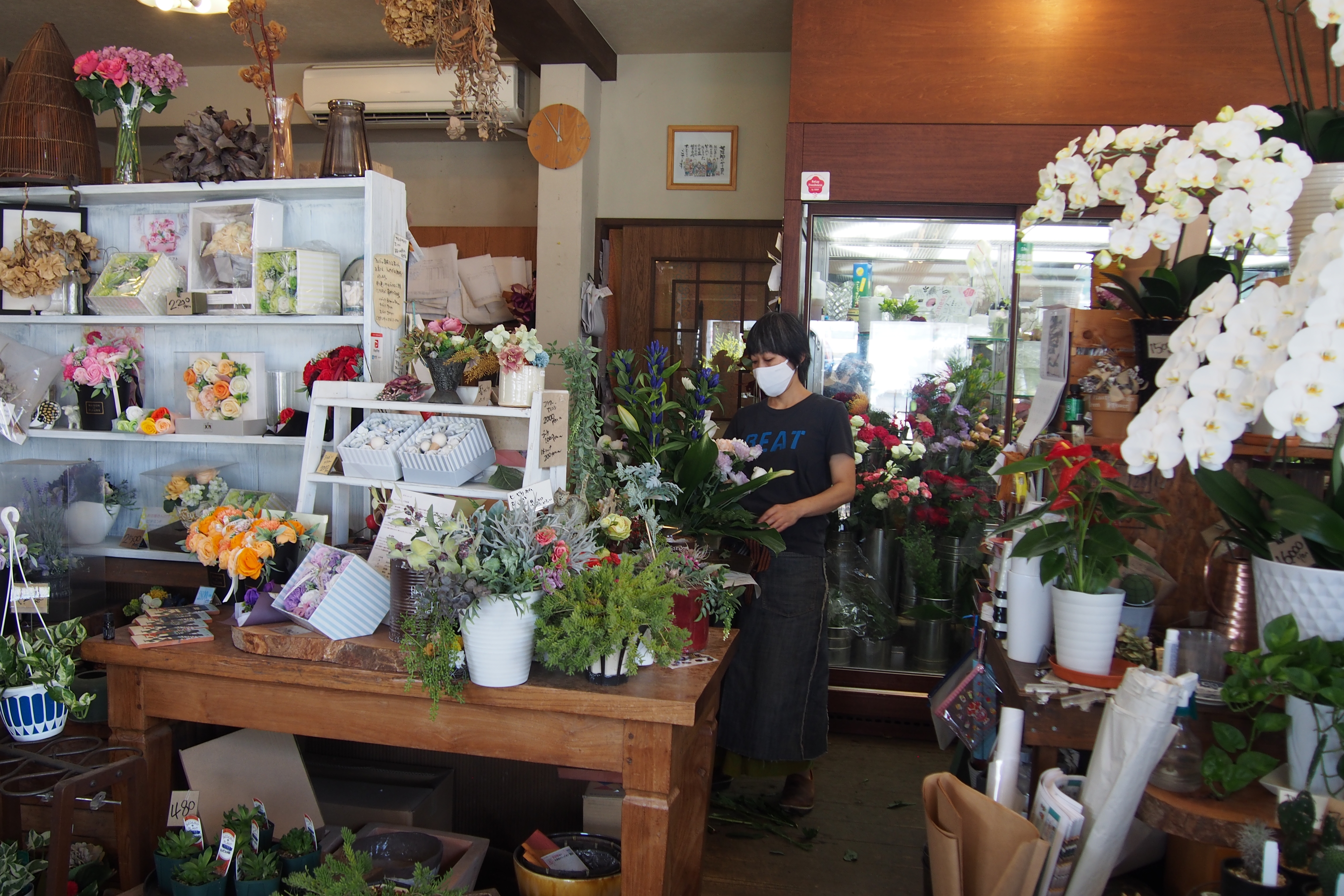 山鹿温泉「さくら湯」の通りを、菊地方面へ進んだところにあるこちらのお花屋「Pixy」さんの敷地内駐車場の片隅に珍しい自動販売機はあります。