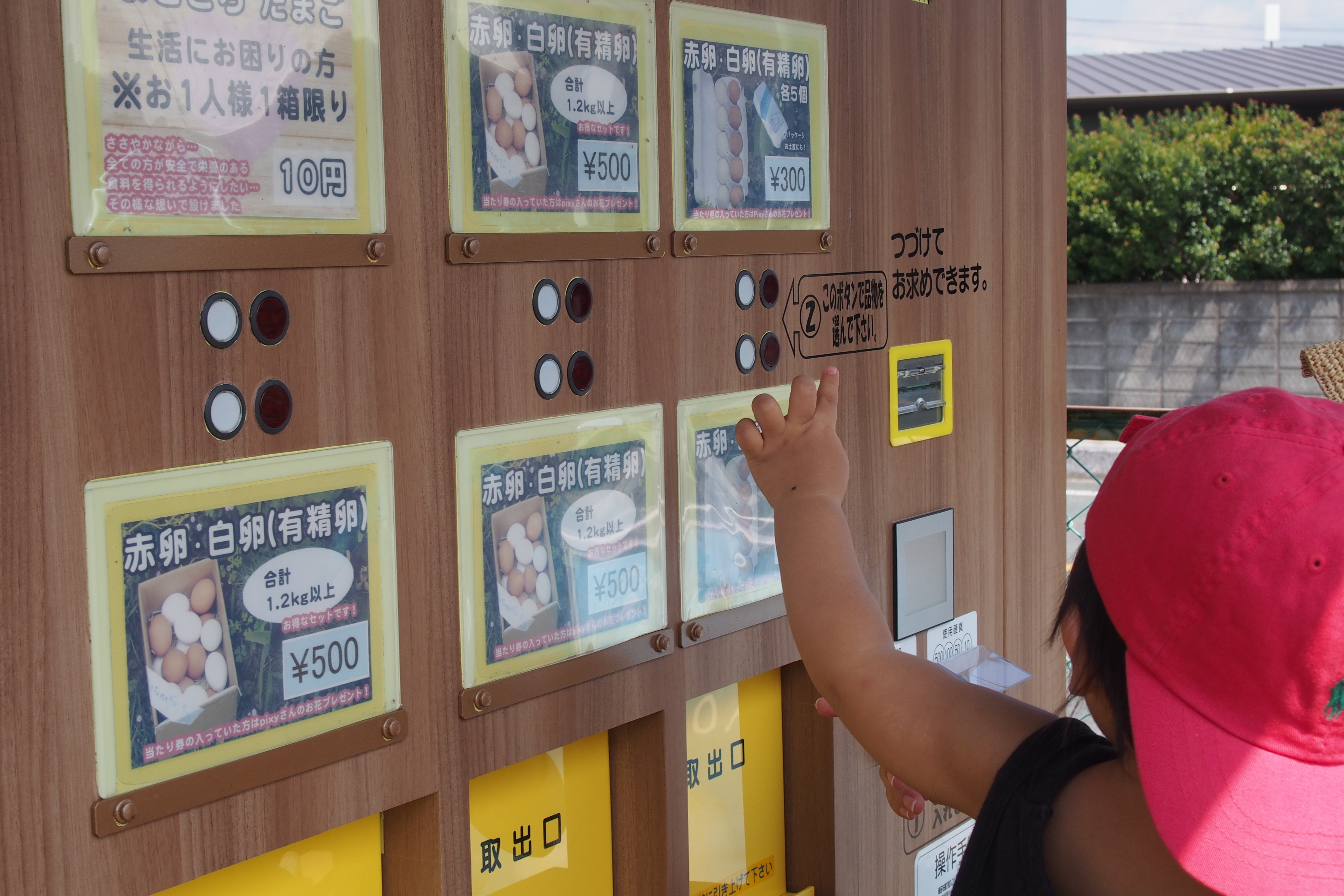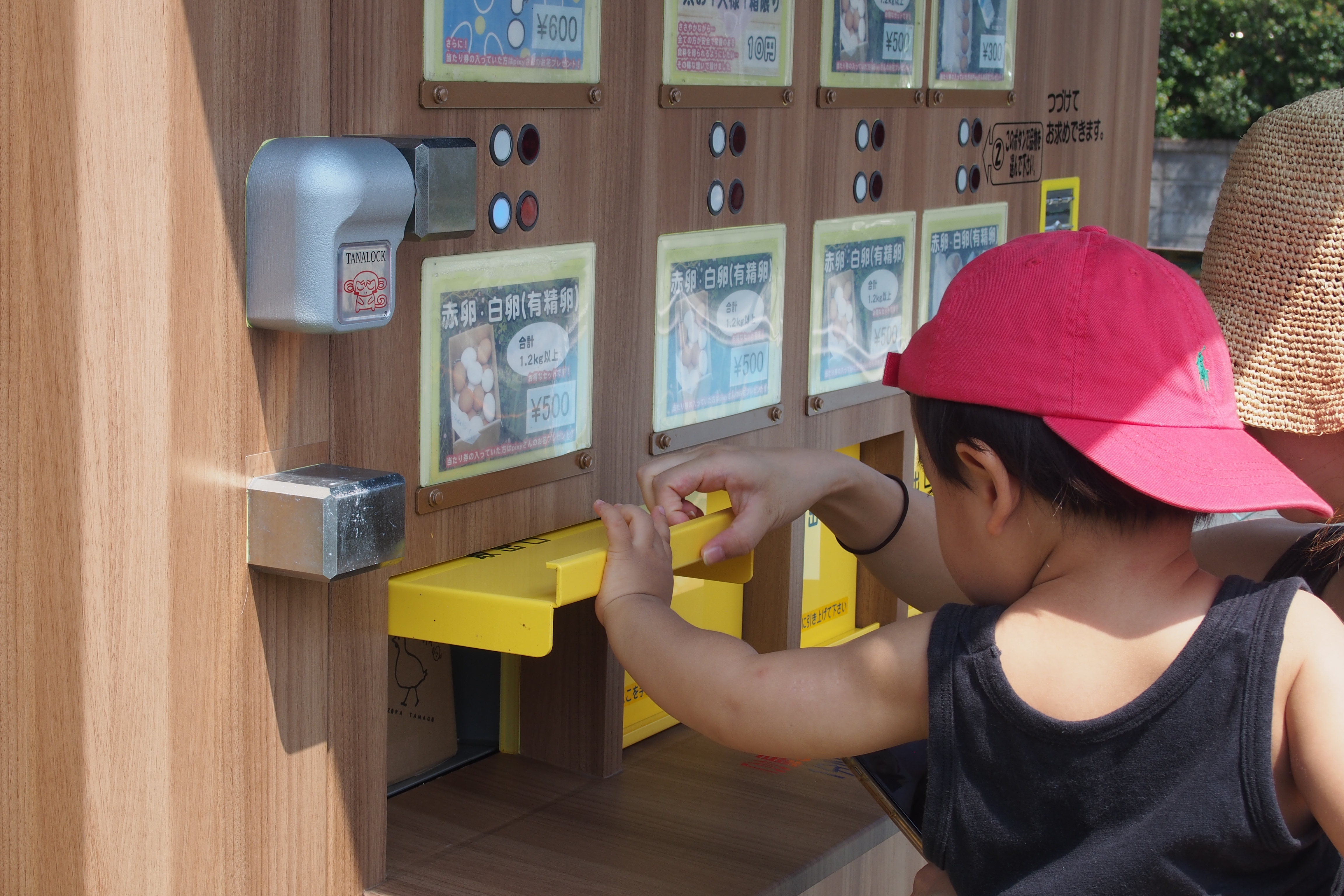 たまごの自動販売機なんて、「どうやって出てくるのだろう?」となんだかわくわくします!初めての方でも操作は簡単。