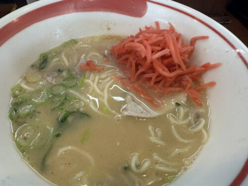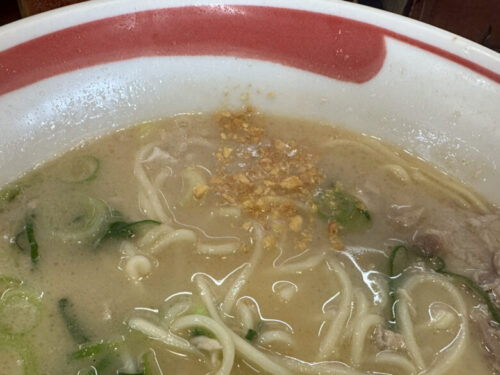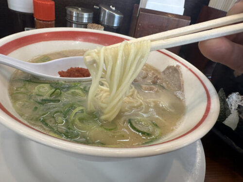 麺は中細ストレート麺。長浜ラーメンや久留米ラーメンよりちょい太めの麺でしょうか。