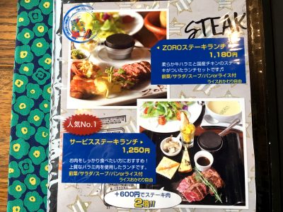 ZOROのオススメはなんと言ってもステーキ!