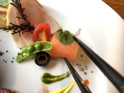 メインのステーキの前に前菜のサラダを。