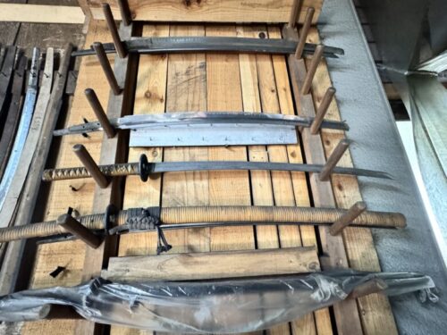 ズラッと刀が…握ってみたい(絶対だめよ)と言う気持ちを抑え、鍛錬の様子を見学します。