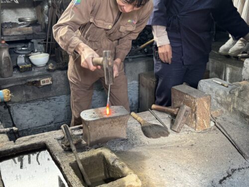 実際の刀は打てませんが、鍛錬体験ができますよ!そのまま弟子入りしたいと言う方もいるくらい、ハマってしまう伝統工芸。