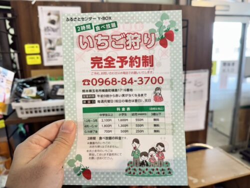 玉名市横島町の「ふるさとセンターY・BOX」ではいちご狩り体験ができます。