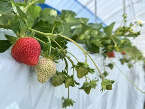 いちごはビニールハウスで栽培されているので、ハウスに入ると