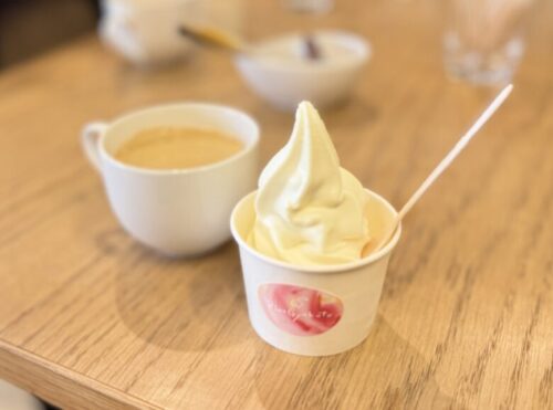 「幻のすもも」ハニーローザがソフトクリーム(カップ350円)にもなっています。