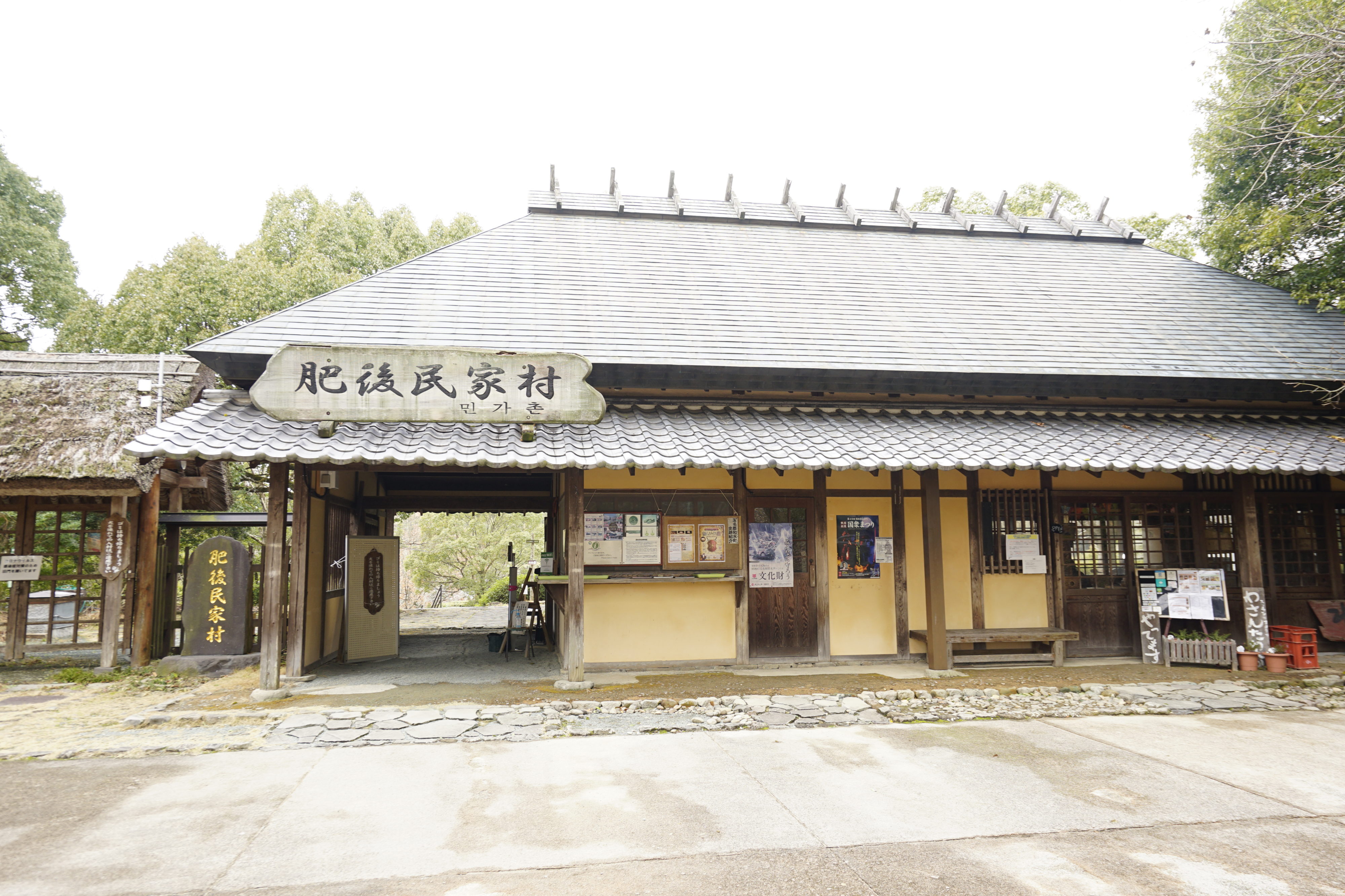 公園内には「肥後民家村」と言う茅葺屋根の建物が並ぶ、タイムスリップエリアが存在します。