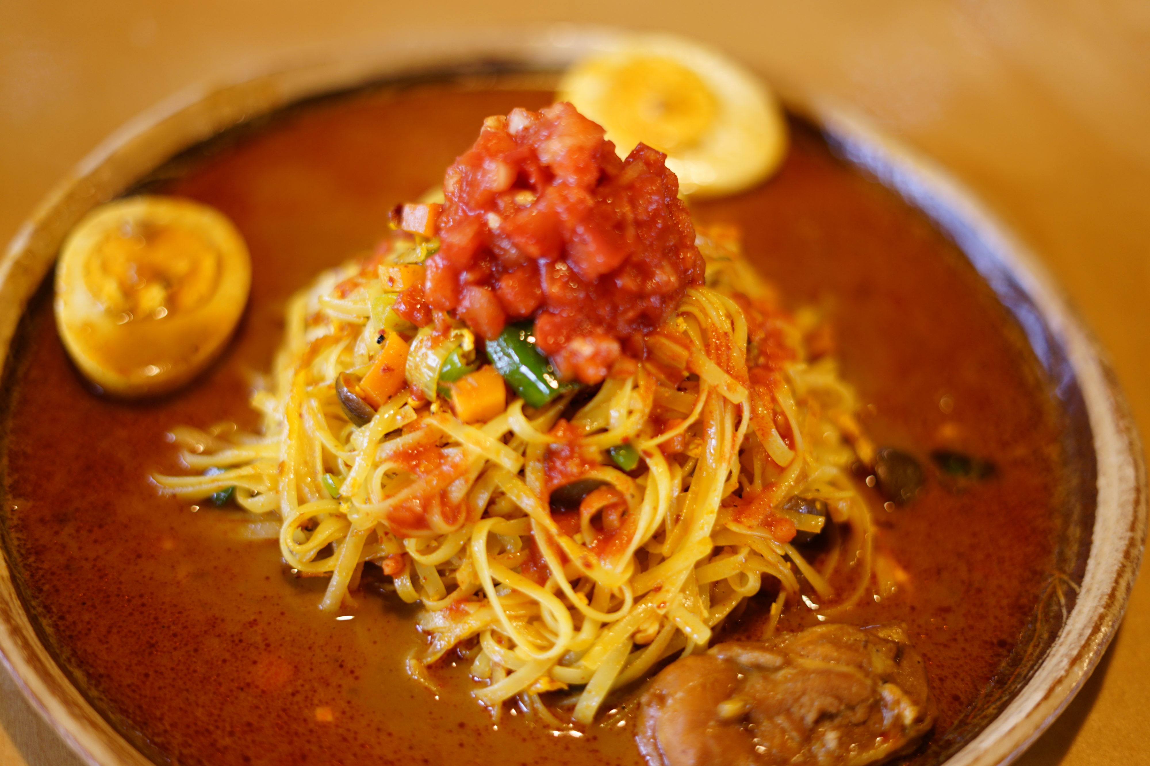 続いてはヌードルカレー。ご飯の代わりに平打ち麺、カレー食べにきて「すする」とは思わなかった。