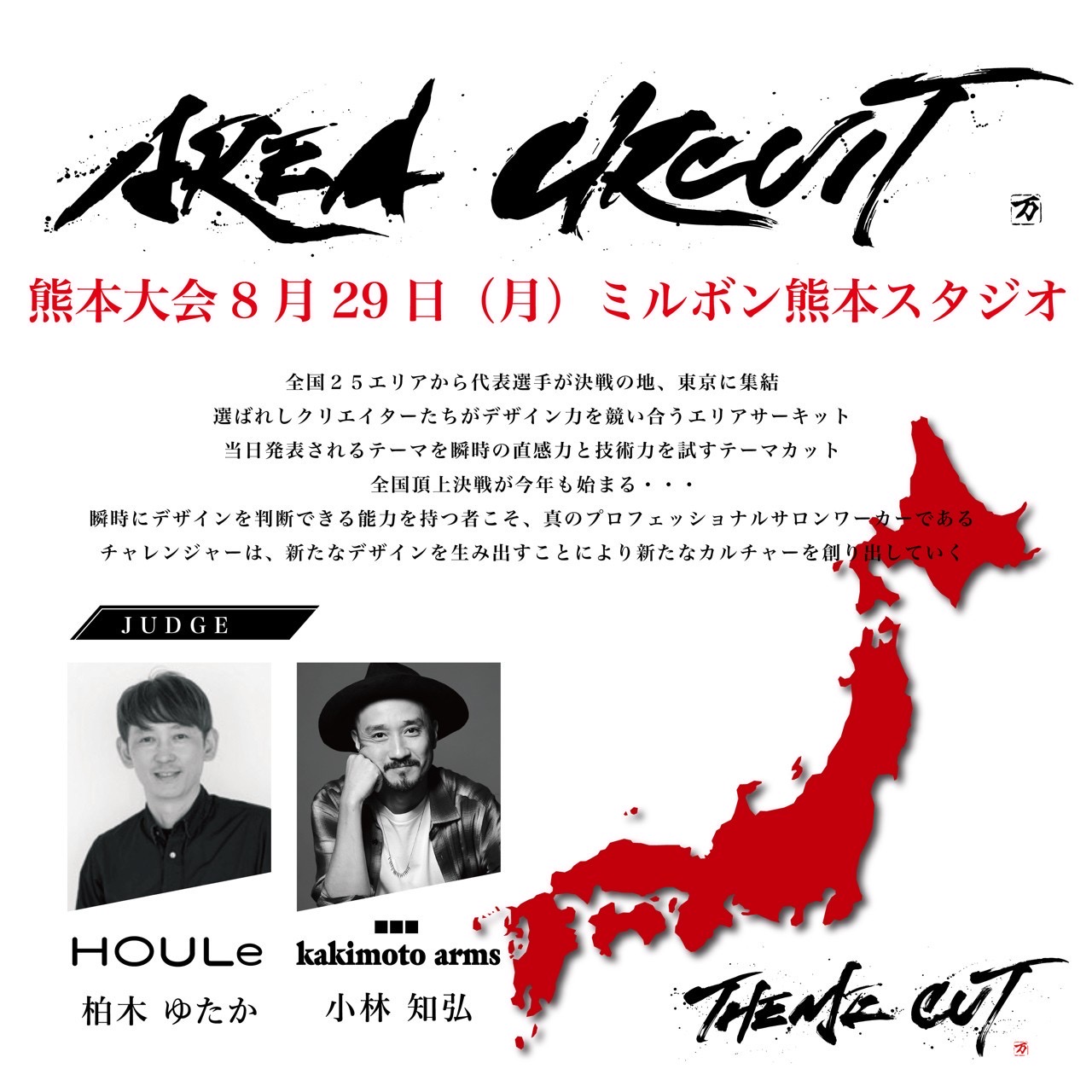 エリアサーキットとは、参加した美容師さんが当日発表されるテーマに基づき、瞬時のインスピレーションを最大限に活かし創造力・技術力・感性を駆使しオリジナリティのあるスタイルを創り上げるカット競技です。(主催:美容ディーラーガモウグループ「株式会社ワシズ」さん)