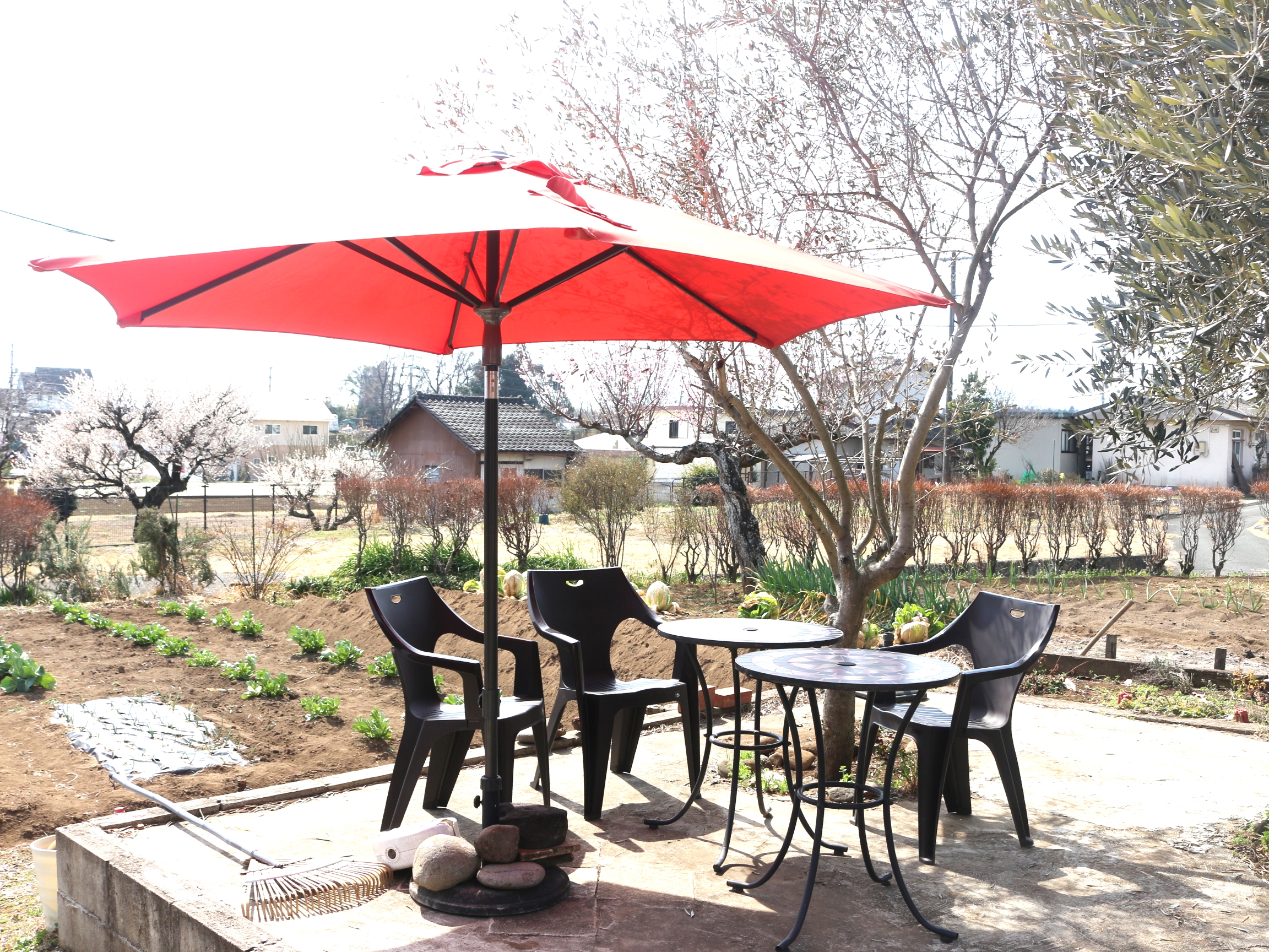 畑の前にはテラス席もあって、今の季節にぴったり。