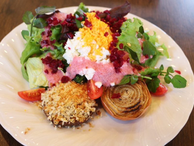 酸味が美味しい自家製ドレッシングに、ビーツのピクルスが良いアクセントに。新鮮でシャキシャキした野菜にとっても合います。つい夢中になって食べ進めてしまいました。