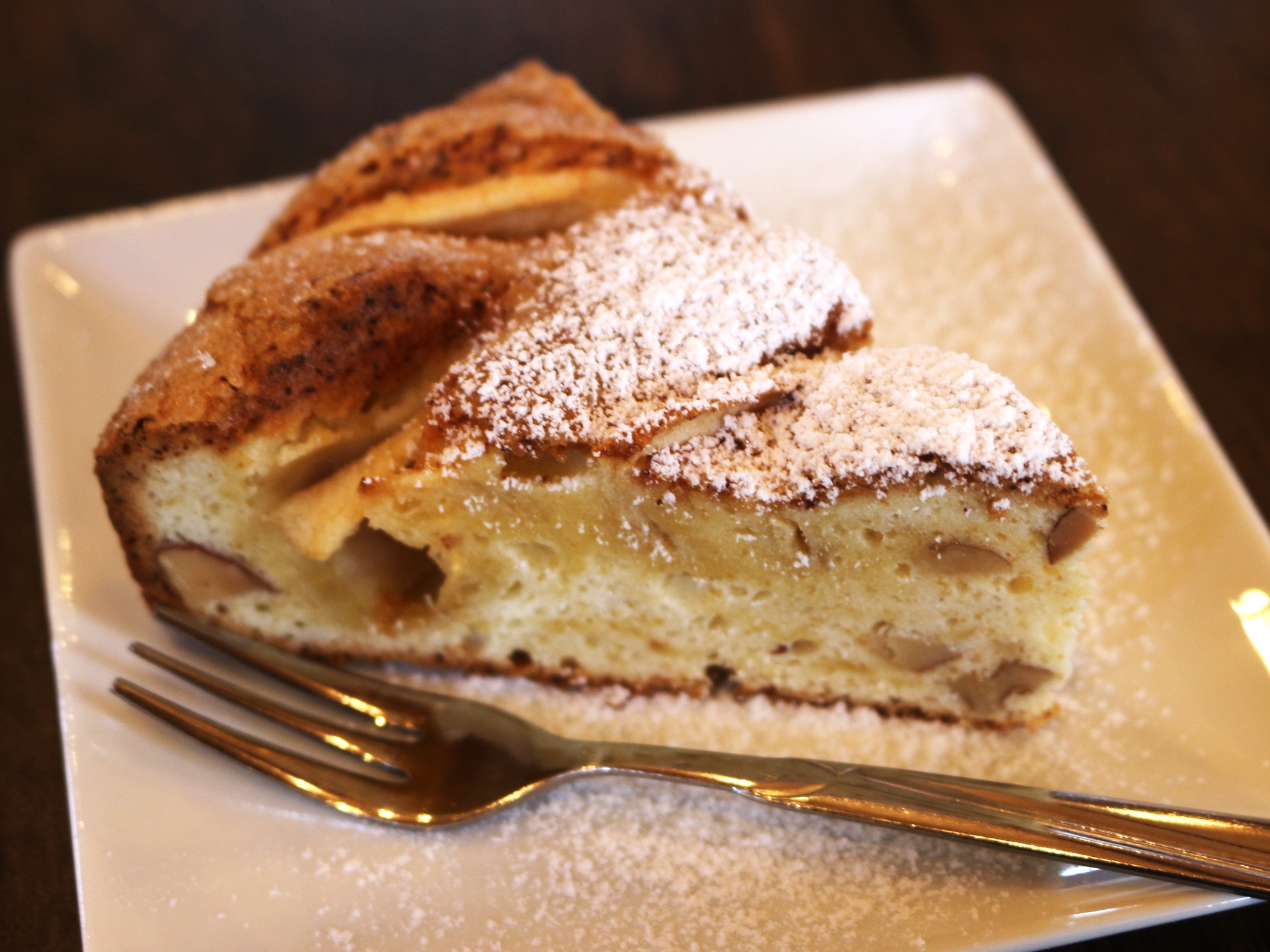 素朴な見た目のケーキ。トルテの上部分はサクサクで、中しっとり。