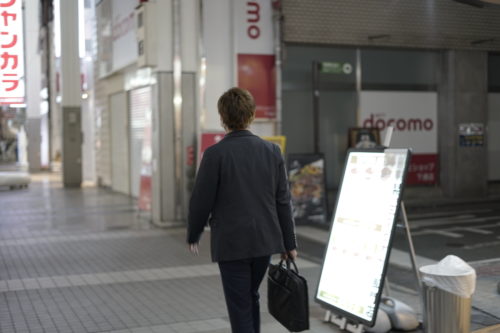 コロナ禍で人通りの少ない街中、午後9時10分。疲れたサラリーマン独り。