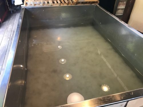 水源のお水で原料をとかした作業場です。もちろん名水使用。