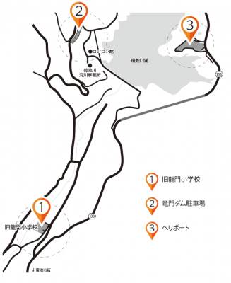 今回の会場は旧龍門小学校(熊本県菊池市龍門356)・竜門ダム芝生広場・ロンロン館(熊本県菊池市龍門916)※同じ敷地内にあります。