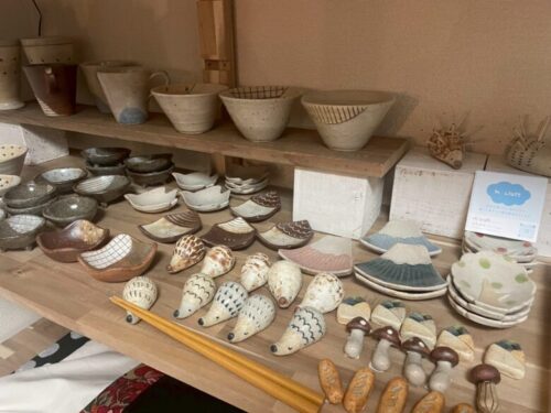 お店のランチにも使われている器や箸置き、豆皿などのかわいい陶器類も…。