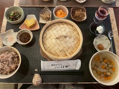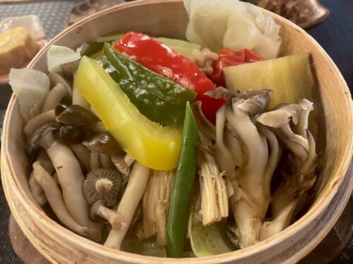 メインのせいろ蒸しは、タレと塩でいただきましたが、素材そのものの味が引き立っていて、野菜の甘さが感じられます。