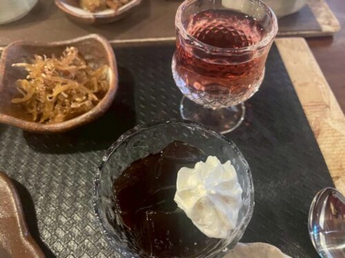 カシスとローズヒップが入った食前酢に、デザートのコーヒーゼリーまで、ちょっとずつ楽しめるのが嬉しい!