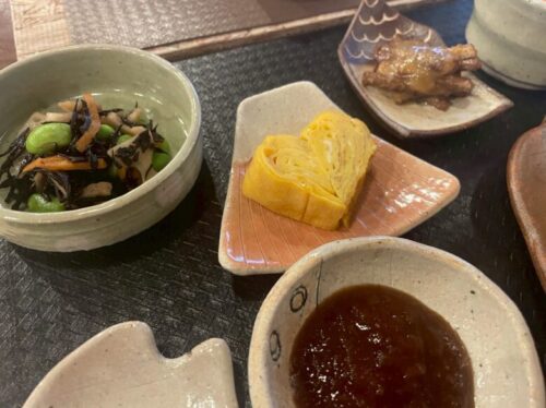 ハートの形に盛られた卵焼きや、ひじきの煮物、生姜の佃煮など、小鉢の一皿一皿も美味しくて、ゆっくりと大切に味わいたくなるお料理ばかりです。