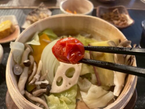 野菜は、菊陽の人参や大津のさつまいもなど、地元の野菜をふんだんに使われているそうで、ミニトマトや玉ねぎなど、「蒸すだけでこんなに美味しいのか!」と驚いてしまいます。