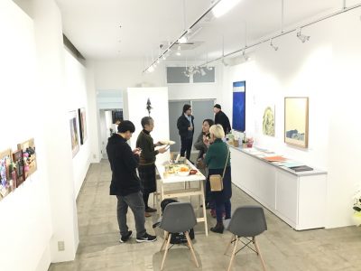 この日はオープニングパーティも開かれており、「ギャラリー=静か」というイメージは、空間の眩しさと人の笑い声で飛んでいき、「身近さ」を感じさせてくれました。