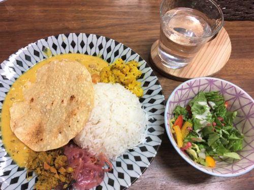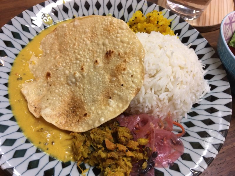世界を旅し、インドにも住んでいた経験があるという、スタッフの由実さんが作られたカレーで、味は間違いありません。インドカレーというと、巨大なナン&とろとろカレーが思い浮かびますが、これは北インドのカレーで、南インドのカレーは、小麦粉が入っていない、さらさらのカレーなのだそう。朝からでもペロリと食べられる美味しいカレーです。
