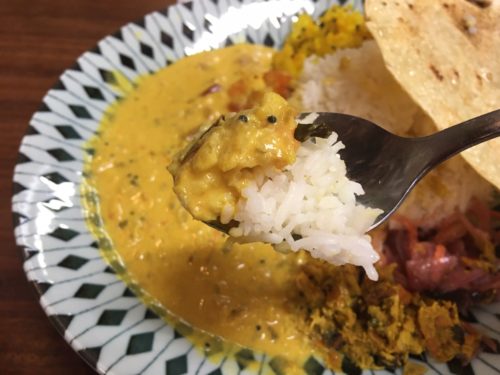 一口食べてみると、スパイシーさとココナッツミルクのマイルドさが相まって、めちゃくちゃ美味しい!