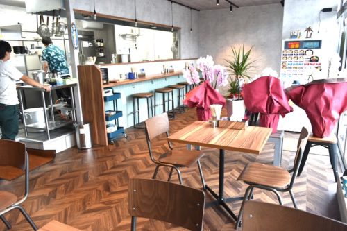 女性も入りやすい、ウッド調のカジュアルな店内のお好きな席に座りましょう。カウンター席もあるので、お一人さまでもいけます。