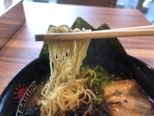 麺は、とんこつスープがよく絡むように、計算されたはずの細麺ストレート! 今回食べた麺は、モチモチっと弾力があります。ちなみに、バリカタなど麺の固さにこだわりたい! なんて方は、注文時にスタッフの方に伝えると調整してくださるそうです。なんて優しい。