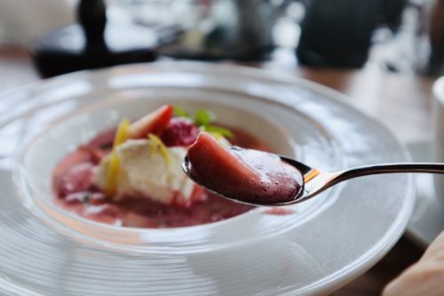 たぷたぷとした苺の甘い甘いスープに