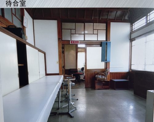待合室。なんとなく今もこの面影が残っています。このころは、アルコール消毒の香で満ちていたのでしょうか。